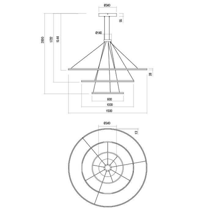Redo Orbit 186W 3000K/4000K TRIAC Diam 150cm
