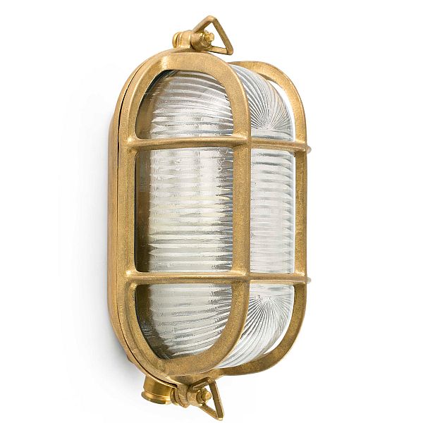 Wall lamp with a classic style, made of brass and transparent glass.