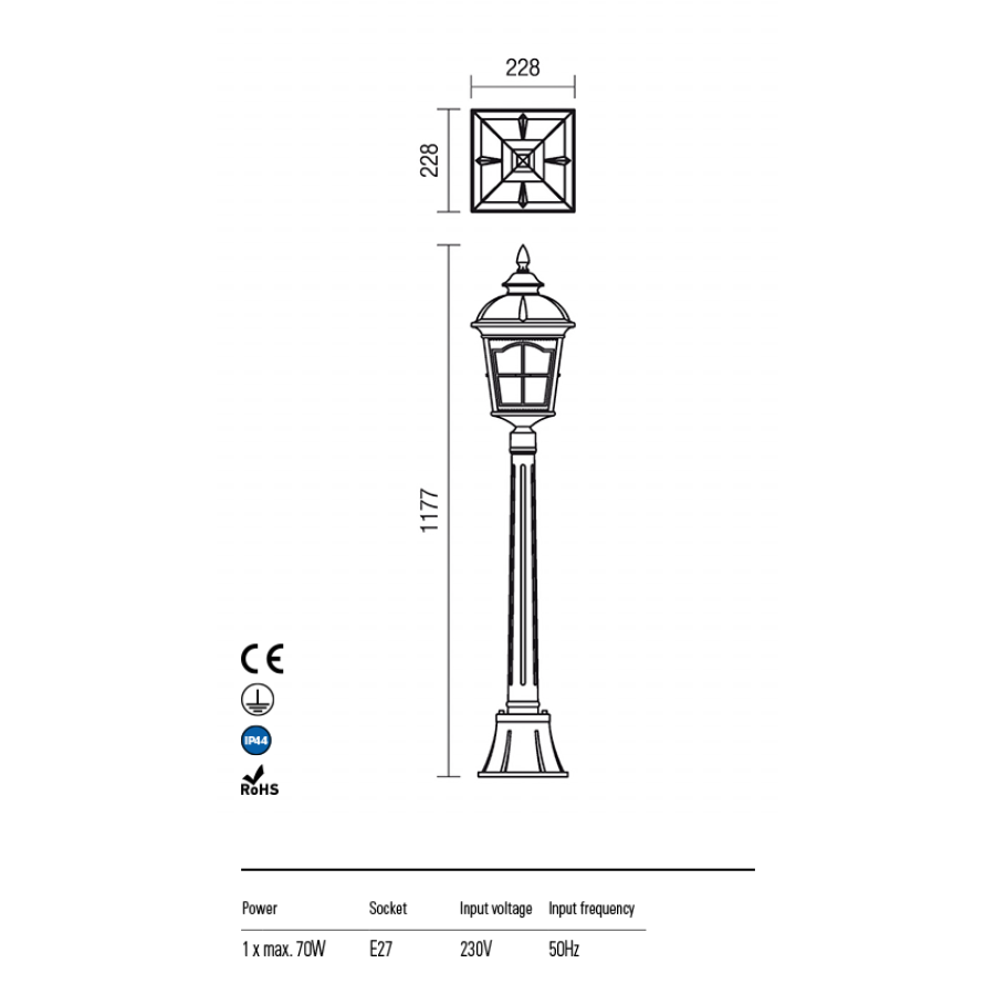 Redo York 1*E27 IP44 22,8*22,8cm