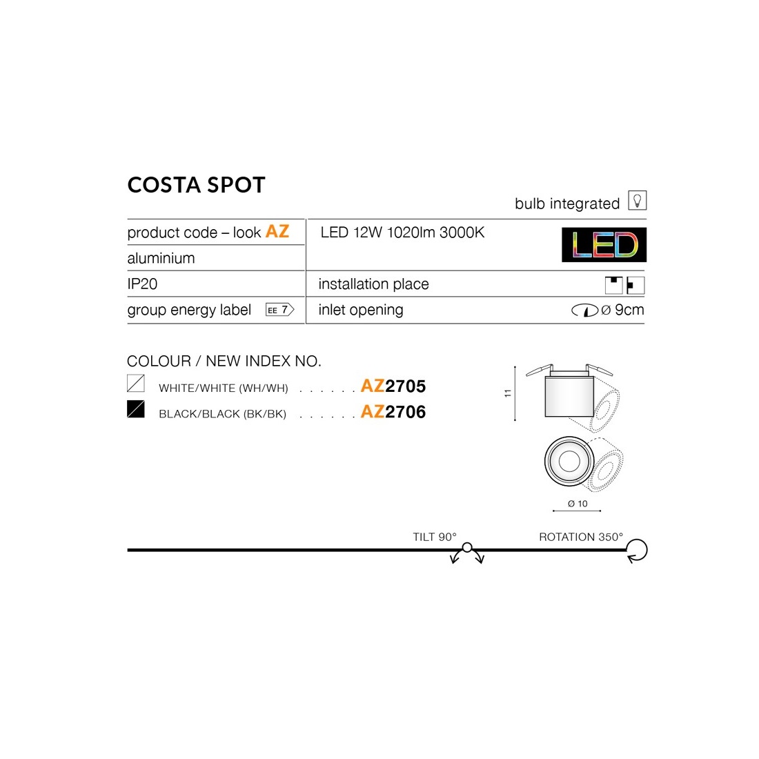 Mājas lapaIekštelpu gaismekļiVirzāms griestu gaismeklisCOSTA SPOT